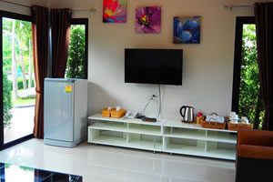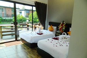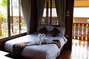 “Baan Mafueng” houses offer new, clean and modern accommodation on ground floor. They are 40 sq.m. and all have large double beds. Toilet is stylish and outside you have a small terrace. The beds have new and comfortably soft mattresses. They have a great view of the lake and river.