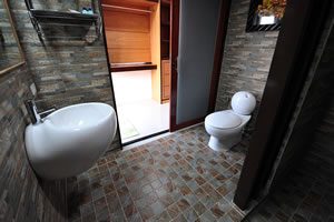 Two of the rooms named “Baan Chompu” have two single beds instead of a double bed. It is a 45 sq.m. room with own toilet and own terrace outside. The beds have new and comfortably soft mattresses. It is ideal for singles who find a dorm two noisy and uncomfortable and are OK to share a room.