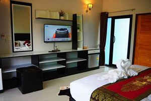 “Baan Mai Prayuk” bungalows are stand alone houses. They are 35 sq.m. and all have rooms all have large double beds. Inside you have your own toilet inside and outside your your own terrace. The beds have new and comfortably soft mattresses.