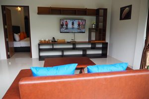 The Luxury “Pool Villa” rooms are right next to the pool and very large, 100 sq.m. They have two separate bedrooms, each with a big double bed and each bedroom also has its own private bathroom. The Pool Villa’s are ideal for two couples who prefer to stay together. They also have their own living room with TV etc.